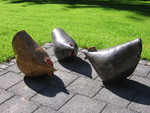 20202 etende kippen. De één is chocolade bruin, de ander wit spikkel. De maat is voor de 2 kippen samen.