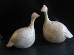 20152 etende vogeltjes in de Naked Raku techniek. Samen zitten ze vast op een keramiek plateau. De techniek geeft een 'soft' effect.