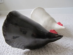 20112 Kippen; 1 zwart spiegel geglazuurd, 1 wit transparant. De opgegeven maten zijn per stuk. De prijs is voor de 2 samen.