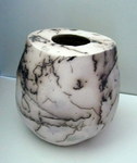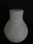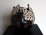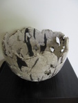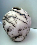 2015Bolvaas (kan door de stooktechniek niet als zodanig gebruikt worden). Na de 2e stook is de vaas met paardenhaar bewerkt wat een bijzonder effect geeft.