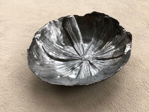 2022Grote schaal waarin grassen zijn afgedrukt. Binnenkant is spiegel zwart geglazuurd, buitenkant is mat zwart.