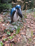 2012Een fantasie vogel op ijzeren poten die in de grond staan. De vogel is in 3 kleuren geglazuurd. De opgegeven hoogte is exclusief de poten, dus alleen van de vogel.